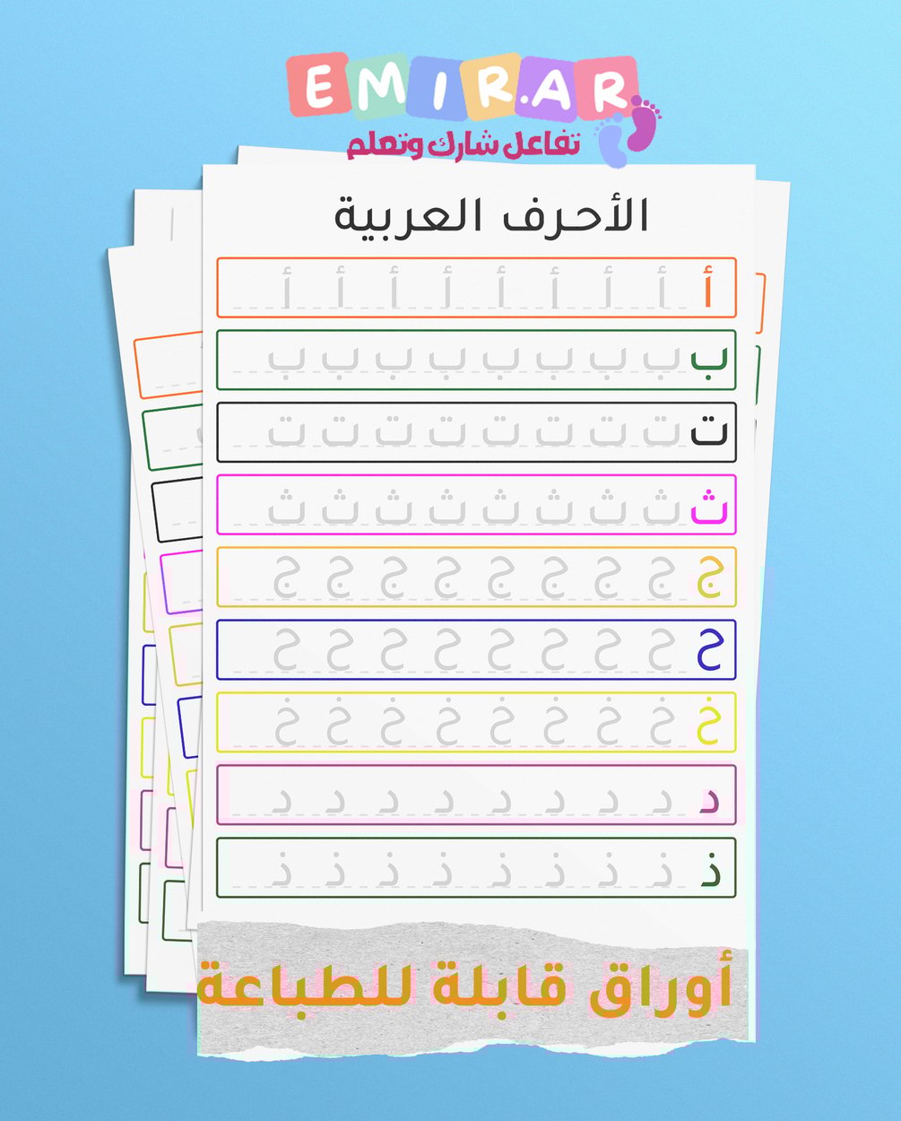 منتج رقمي يساعدك على تعليم طفلك كتابة الحروف العربية بشكل سهل وميسر يضم هذا المنتج الرقمي 4 صفحات , عبارة عن ملفات جاهزة للطباعة بشكل مباشر